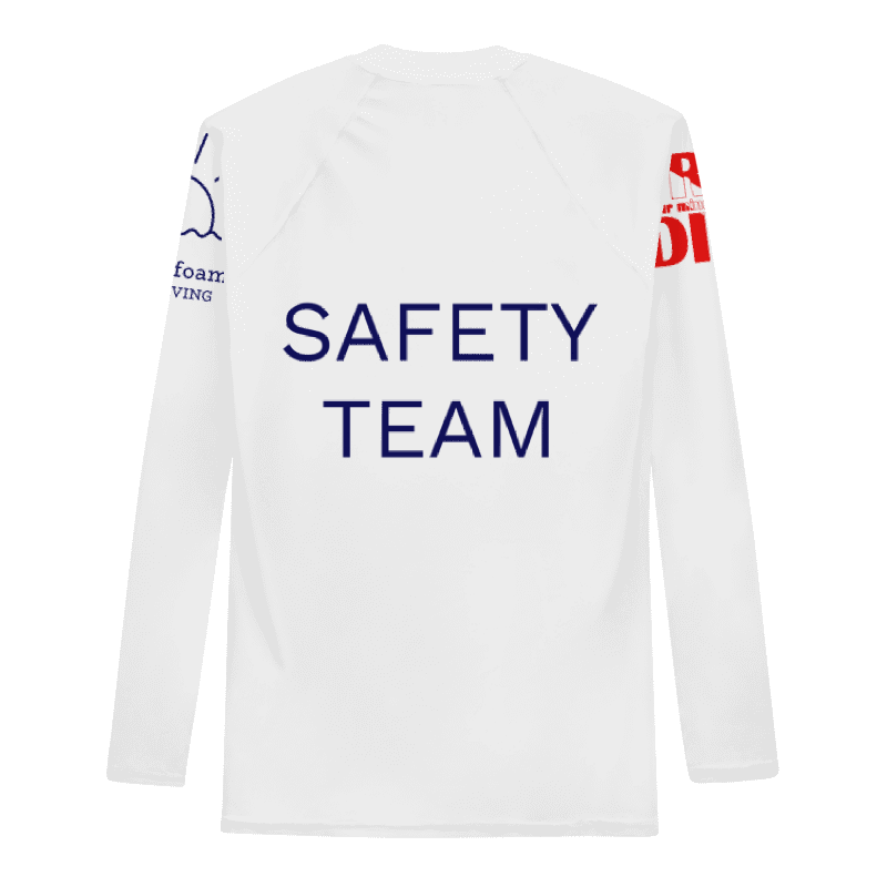 This rash guard has been created for members of the Safety teams at our "Go Deep California" competitions.